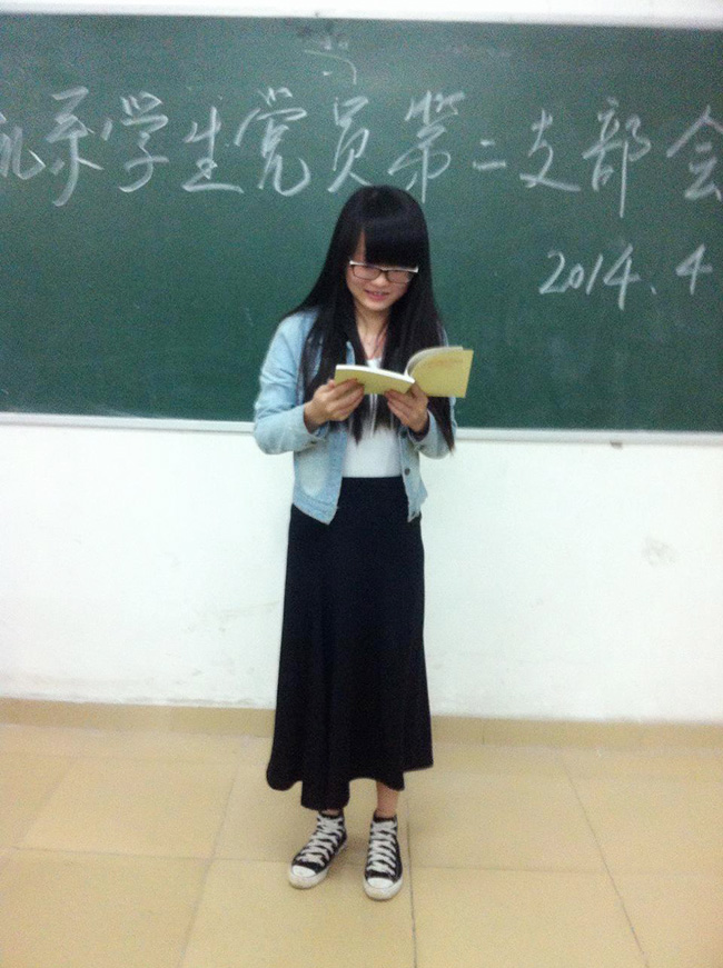 然后,宣传委员万淑婷同学结合支部实际情况,提出各位党员同学应遵守校纪校规,认真学习,起先锋模范作用。