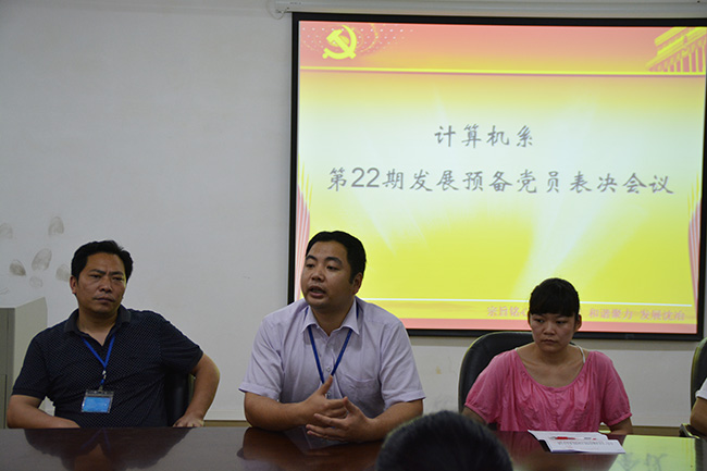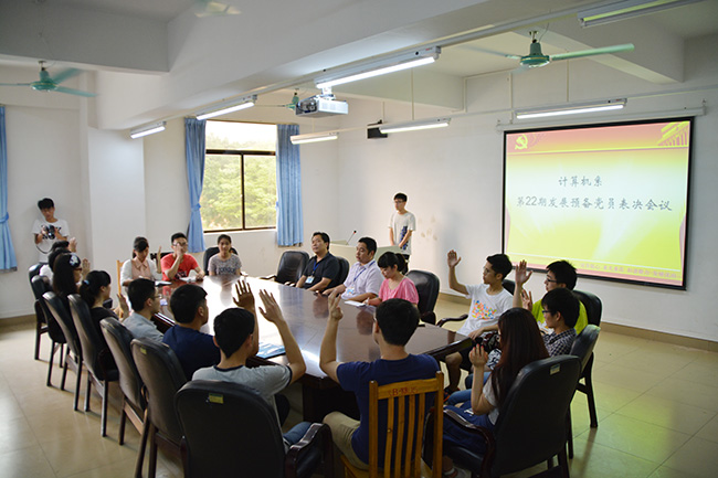 会上,党员发展对象沈煜林、钟燕珍、王静琳3名同学汇报发展期内表现情况,支委会报告对发展对象教育考察情况,提出宝贵意见,与会党员充分讨论,指出发展党员优缺点,会上正式党员对发展党员投票表决,一致通过3名同学表决申请。