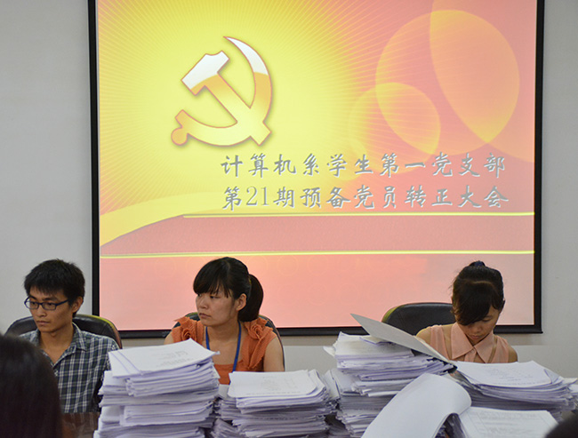 6月27,计算机系第一学生党支部召开了第21期预备党员转正表决大会。计算机系第一党支部书记何祉谕,第一党支部各支委,正式党员17人及预备党员9人参加本次会议。