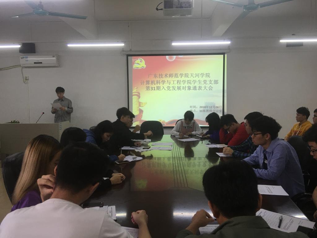 (通讯员 范明娟)12月6日,计算机科学与工程学院学生党支部于11栋302教师会议室召开第31期入党发展对象通表大会。我院学生党支部书记范明娟,学生党支部支委成员、正式党员、预备党员和8名入党发展对象参与本次会议。