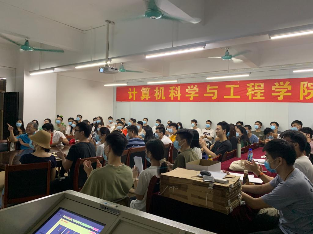 我院院长原峰山、党总支书记蔡岳良、学院部分教师以及学生党员于11栋302教师会议室观摩此次决赛讲党课环节,我院参赛老师陈星莹加油打气。