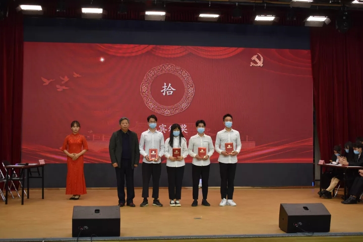 | 通识学院党总支邓楠书记为“线上答题”一等奖获得者颁奖 |