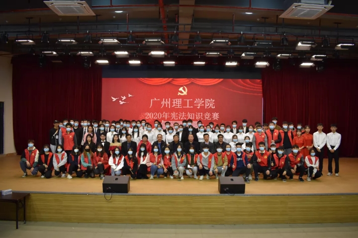 (通讯员:罗海龙、凌诗慧)为深入贯彻落实习近平总书记在党的十九大报告中关于“依宪执政、依宪行政”的法治中国精神,全面学习宣传十三届全国人大一次议表决通过的宪法修正案,在全校掀起学习宪法、尊崇宪法、维护宪法权威和贯彻实施宪法氛围,12月7日,广州理工学院在十三栋报告大厅举办了宪法知识竞赛。本次比赛由学校党委工作部主办,计算机科学与工程学院党总支、机电工程学院党总支和通识学院承办。我校谭海鸥副校长、肖海副校长,党委工作部谭玉清部长,学校各职能部门负责人和各二级学院党总支书记、组织员等莅临比赛现场。全校8个二级学院510多位学生观摩了本场比赛。