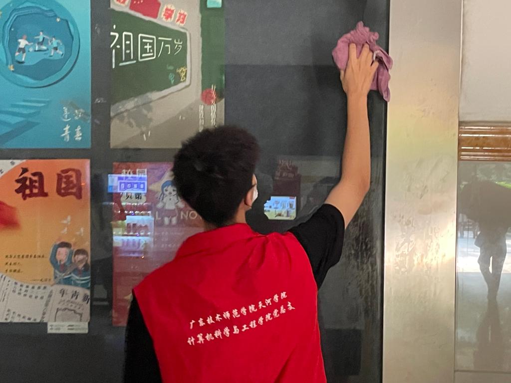 我院同学积极响应号召,踊跃报名,下午四点半,志愿者们准时到达11栋信息楼一楼。此次爱国卫生活动围绕十一栋信息楼周边区域展开,李珂珂同志向志愿者们详细说明打扫事项及需要清洁的场所后,志愿者们带着清洁工具,对信息楼一楼的玻璃进行擦洗,同时对信息楼周边花坛内的杂草、落叶、废弃物品进行清理打扫。