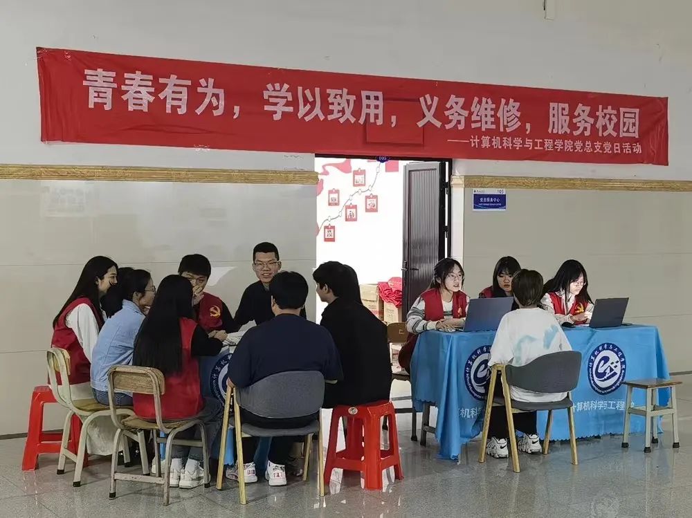 3月9日,计算机科学与工程学院学生党支部开展义务维修活动。9428cn太阳集团古天乐学生党支部秉持着“青春有为,学以致用”的态度,充分发扬了我院志愿者们的志愿服务精神,推广了校园计算机文化,进一步弘扬“奉献、有爱、互助、进步”的精神。
