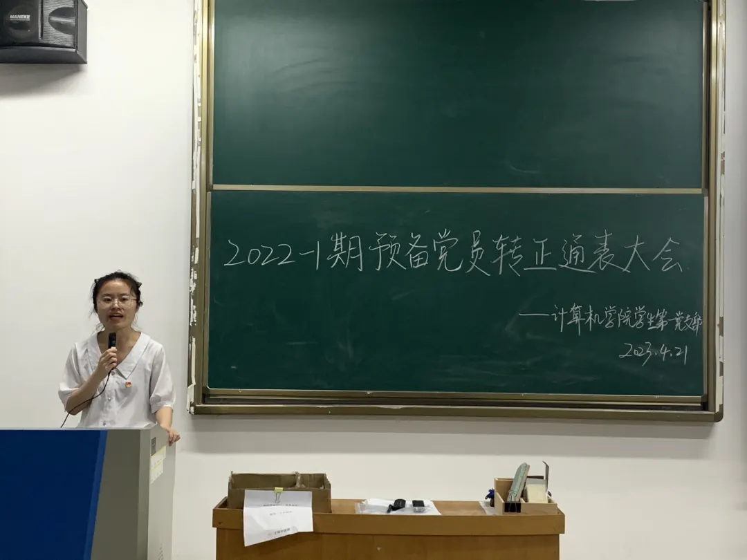 大会通过无记名投票进行表决,一致同意陈鸿飞等34名预备党员转为中共正式党员。随后,学生第一党支部书记李珂珂宣读支部决议并进行会议总结。