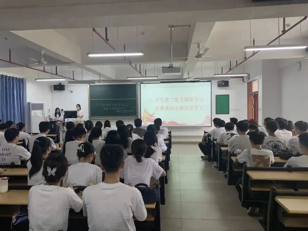 学生第二党支部副书记沈燕清同志做会议总结。沈同志对这27位新发展的预备党员表示热烈祝贺,并强调各位党员同志在未来的一年里也将不断接受党组织的考查和检验,希望各同志能保持入党的初心,不断以积极进取的心态继续向前,在今后的学习中不断提高自己的思想觉悟、政治素质和组织纪律性,用实际行动证明自己的价值。