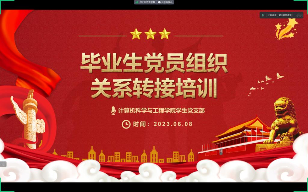 (通讯员:阳可人)6月8日下午,计算机科学与工程学院学生党支部于线上召开毕业生党员组织关系转接培训,全体毕业生党员、学生党支部工作人员按时参会。