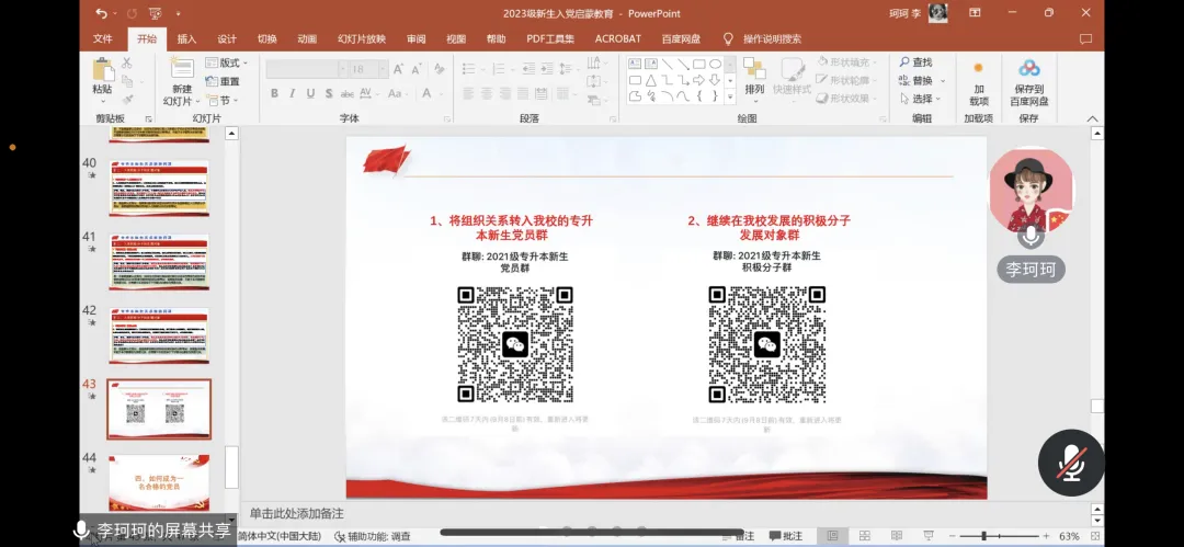 接着,李珂珂同志对专升本新生的组织关系转接问题进行了详细讲解,并建立了2021级专升本新生党员群和2021级专升本新生积极分子群,新生们可以根据需求进入相应的群进行答疑解惑。