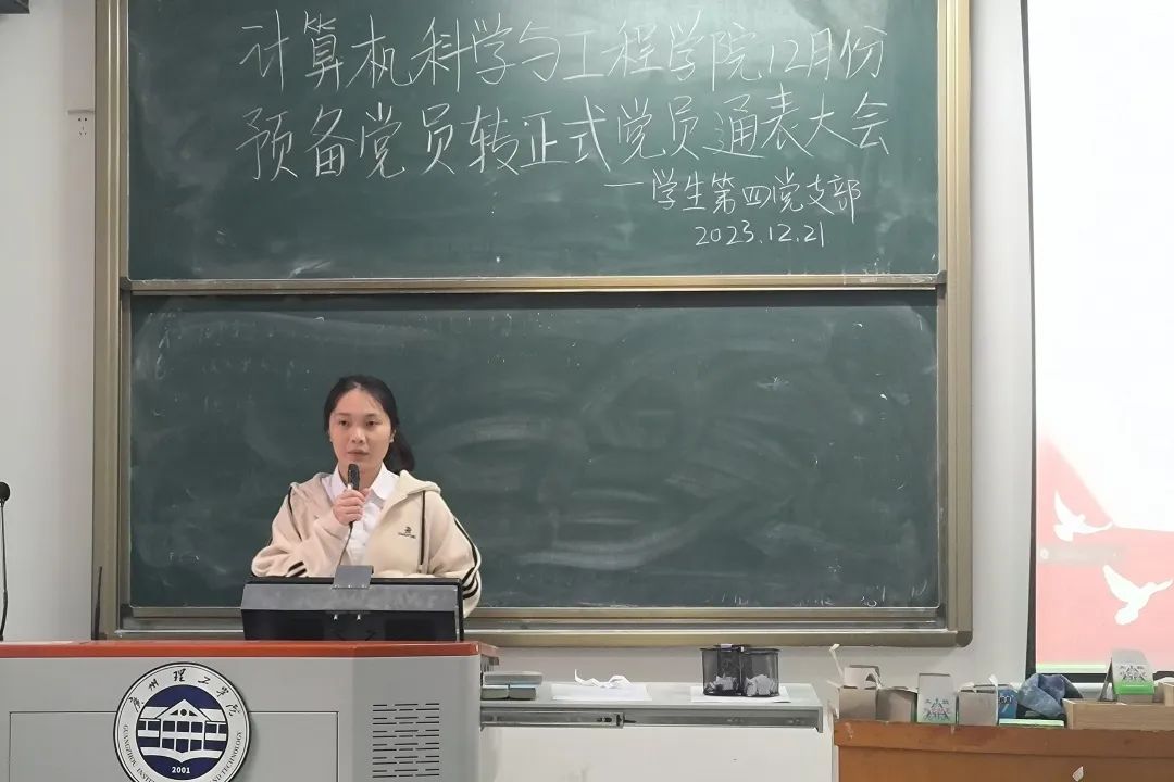 随后,各支部书记进行会议总结。计算机科学与工程学院学生第一党支部书记李珂珂对成功转为正式党员的10名同志表示祝贺。她强调,党员们要不断增强入党的光荣感和责任感,坚定对党的理想信念,永葆正确的政治方向;要始终以党员的标准规范严格要求自己,不但在组织上入党,还要在思想上入党,做一名真正合格的共产党员。