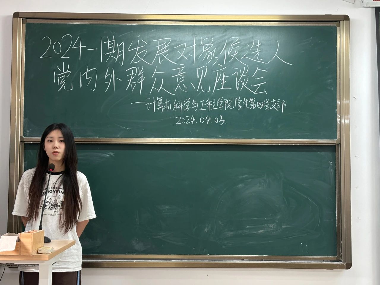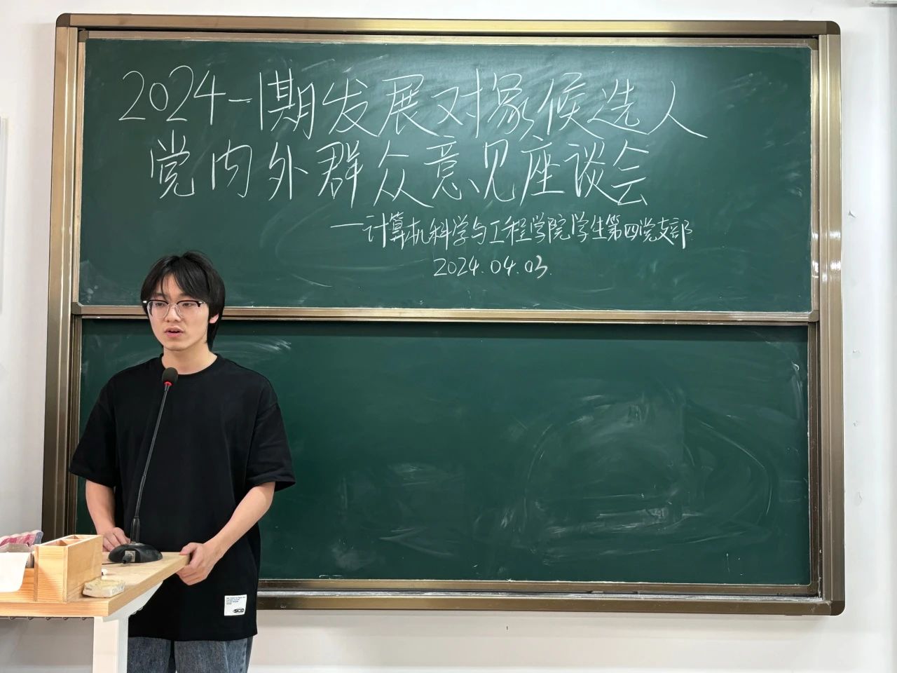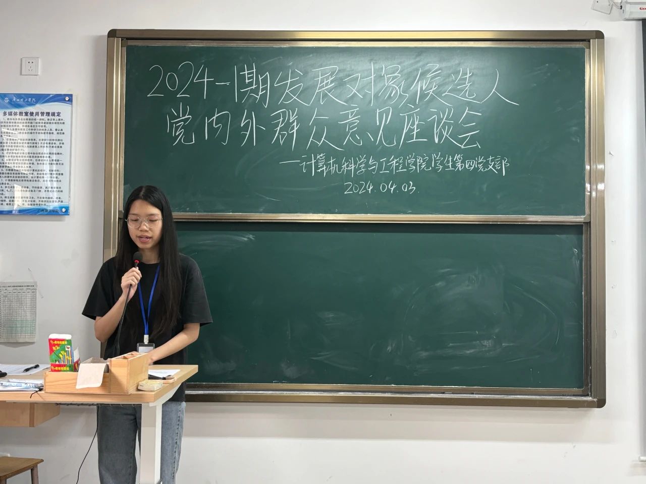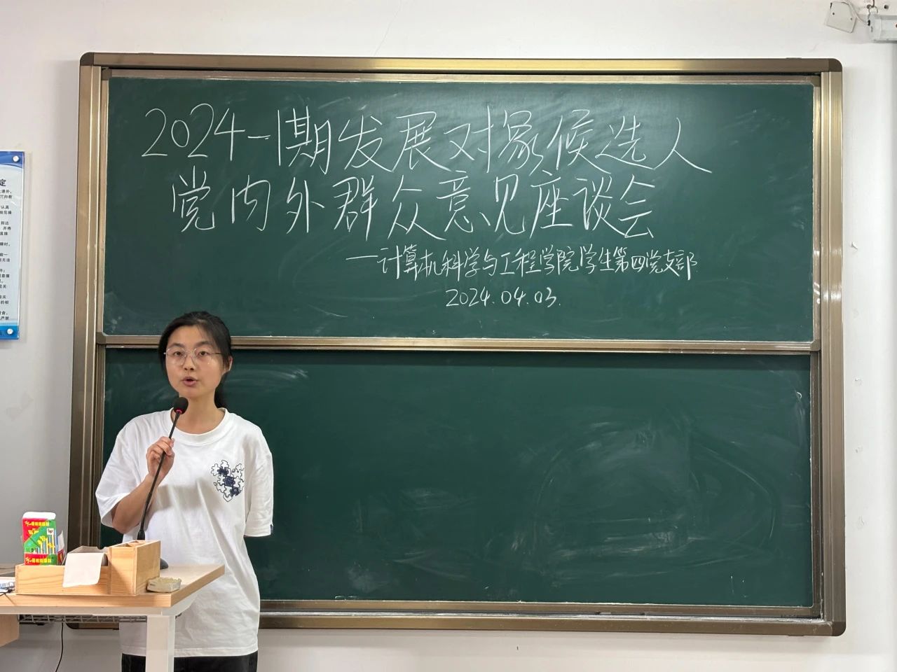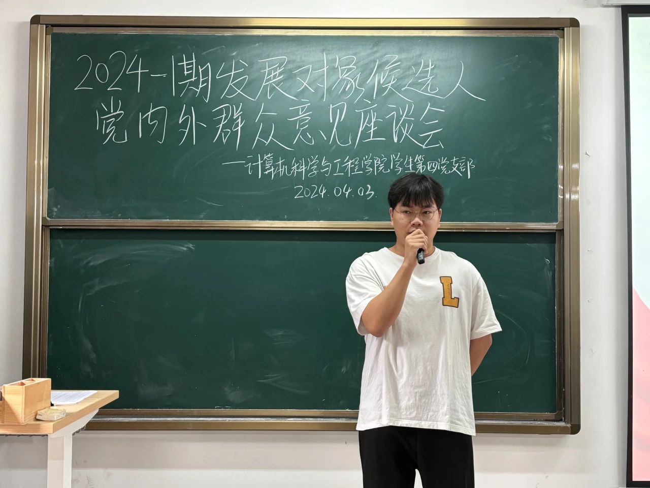 (通讯员:许君琦)4月3日下午,计算机科学与工程学院学生第一、二、四、五党支部于13栋602、702、704、803教室召开2024-1期发展对象候选人党内外群众意见座谈会。全体党员同志、发展对象候选人和学生党支部工作人员按时参会。