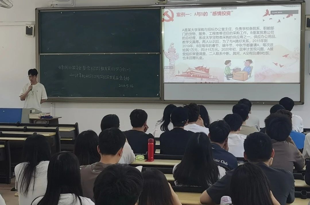 (许君琦)5月16日下午,计算机科学与工程学院学生第一、二、三、四、五党支部以线上线下相结合的方式召开《中国共产党纪律处分条例》学习会暨党纪学习教育案例学习会(一)。本次学习会由各支部副书记及支部委员带领开展,全体学生党员按时参会。