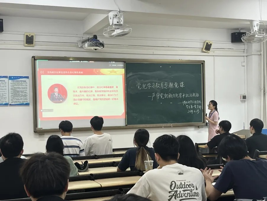 (通讯员:阳可人)6月13日下午,计算机科学与工程学院学生第一、二、五党支部以线下线上相结合的形式召开党纪学习教育专题党课。本堂党课的主题为“严守党的政治纪律和政治规矩”,全体党员同志按时参会。