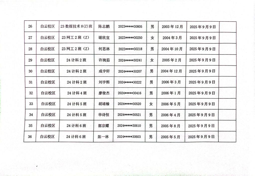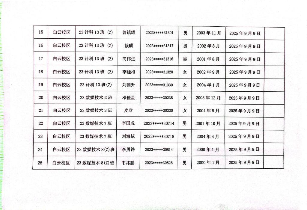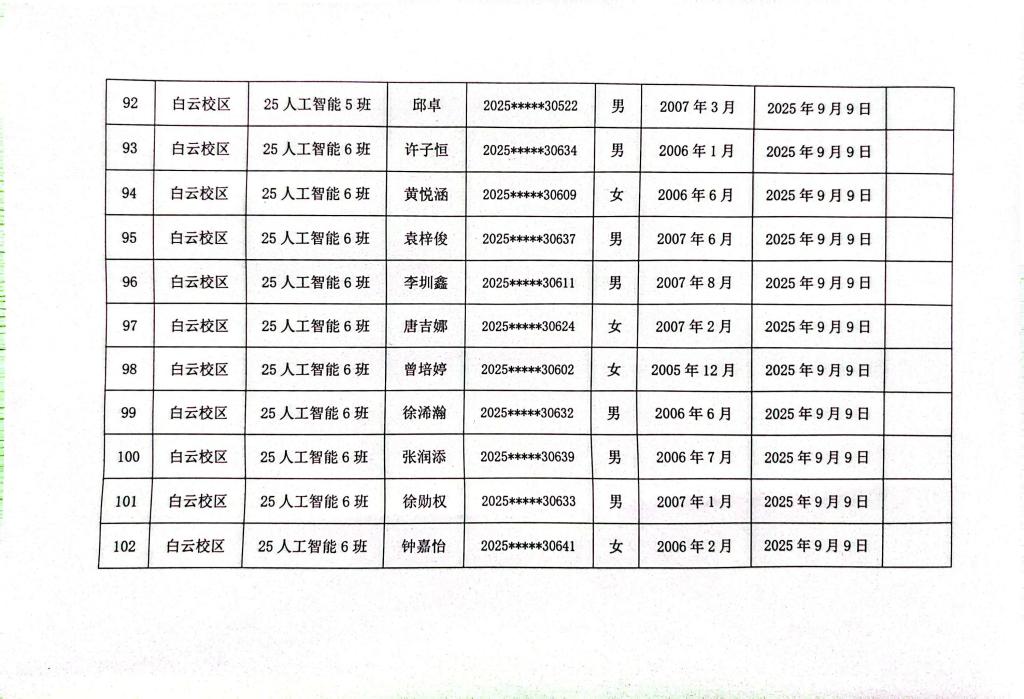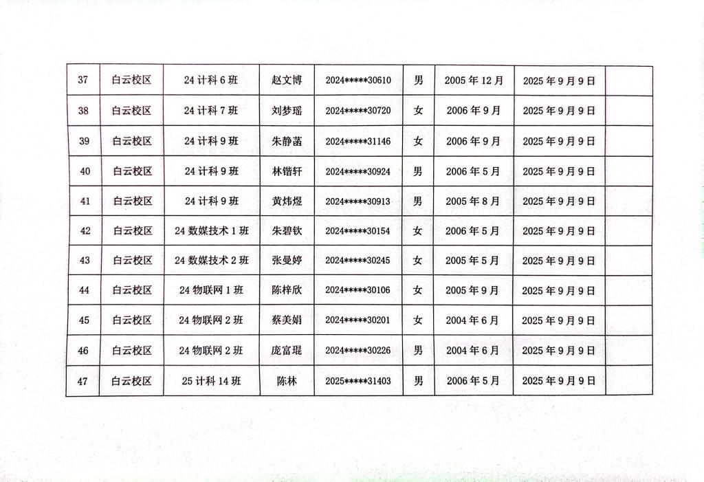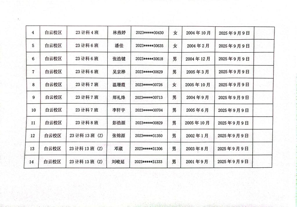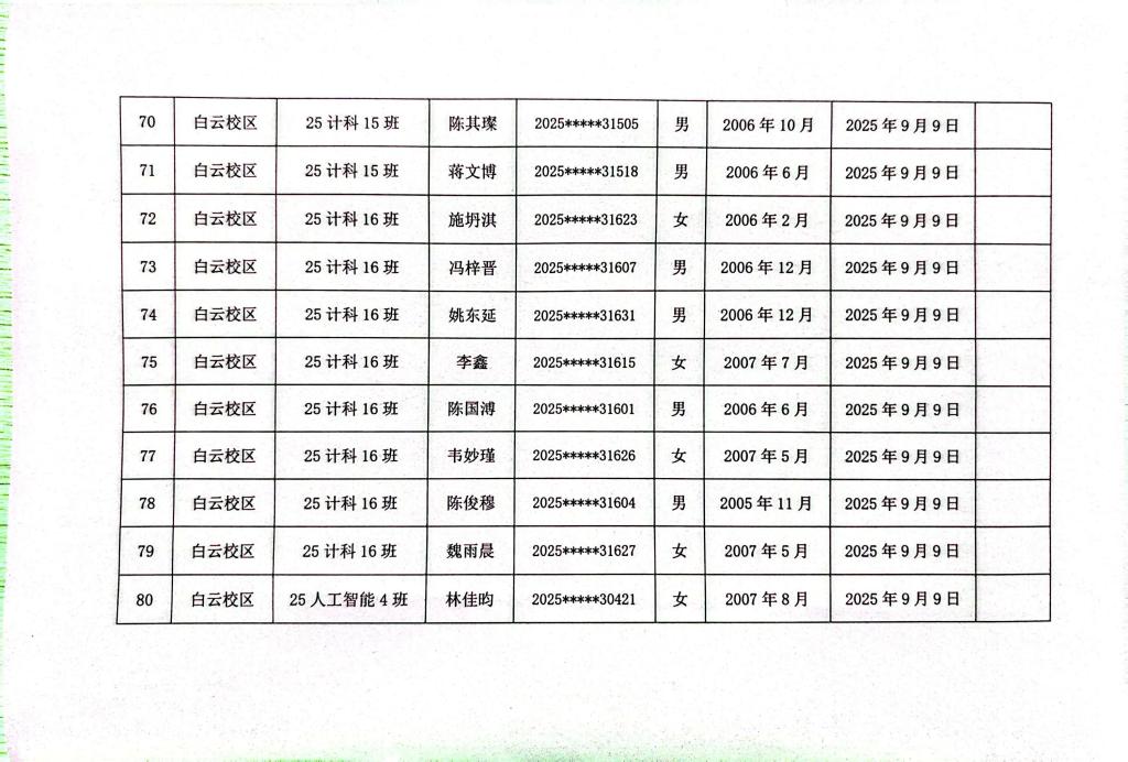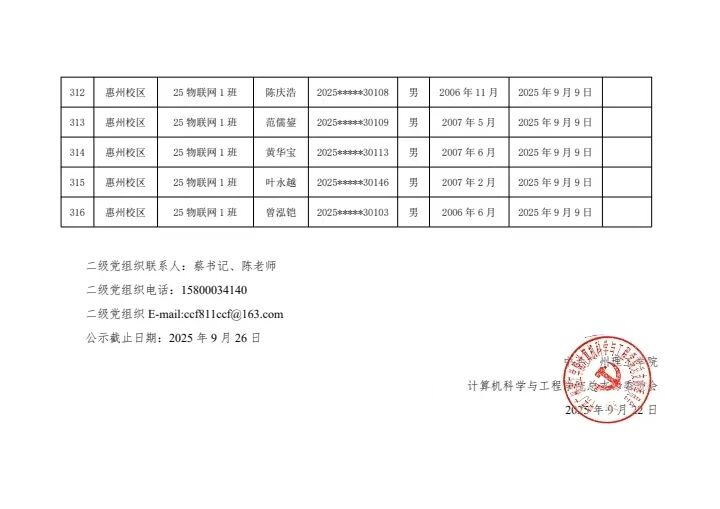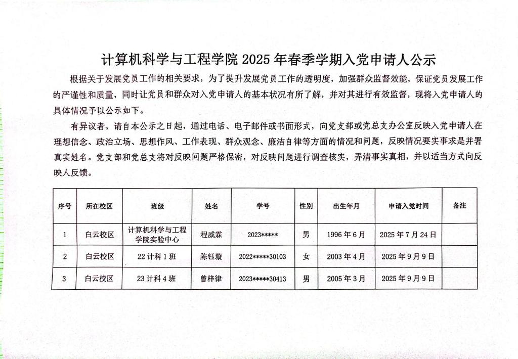 计算机科学与工程学院2025年秋季学期入党申请人公示