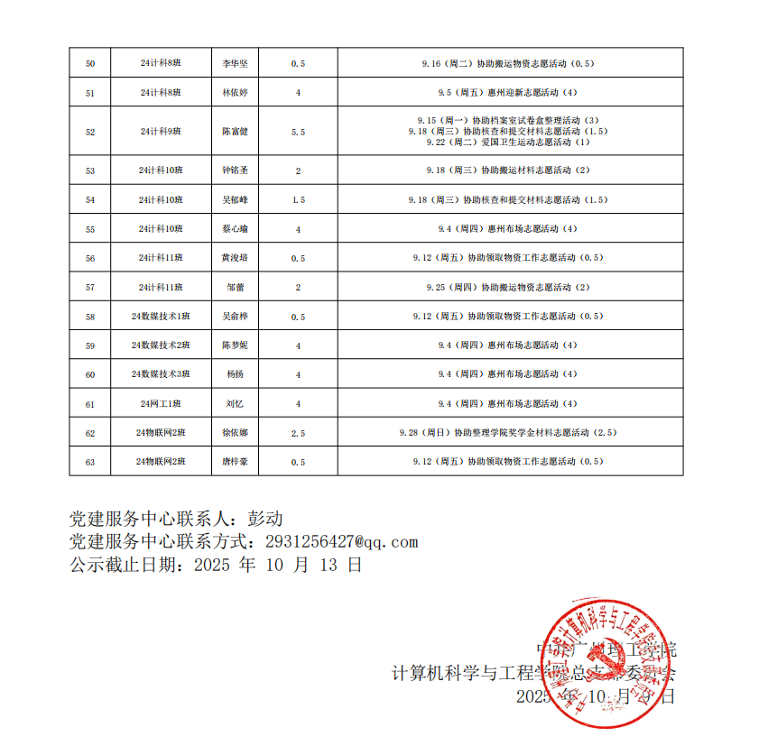 在听取培养联系人、党员和群众意见的基础上,经支委会研究决定,每月对计算机科学与工程学院各个发展阶段的同志进行服务时公示,具体情况公示如下。
