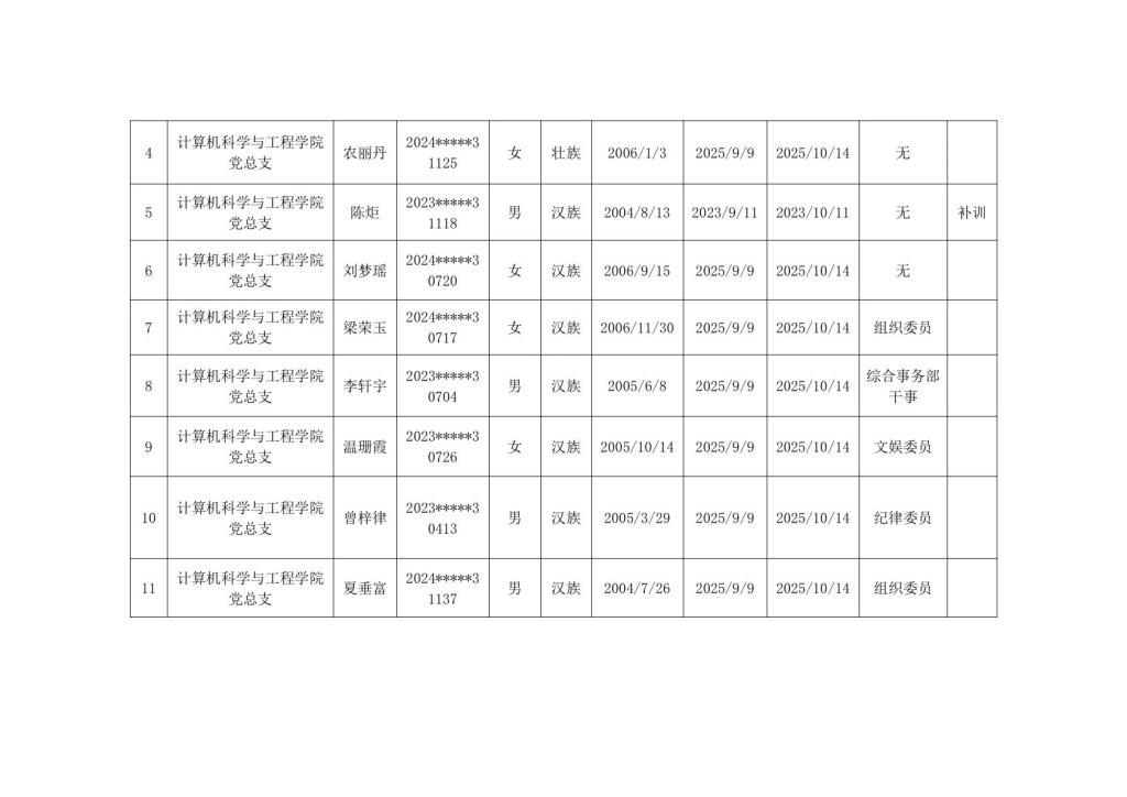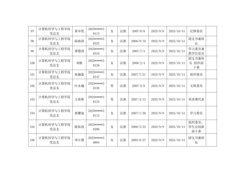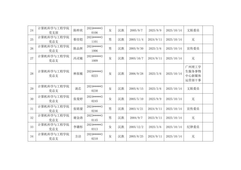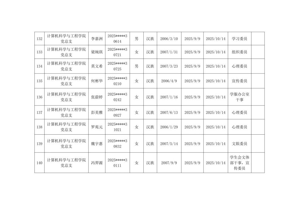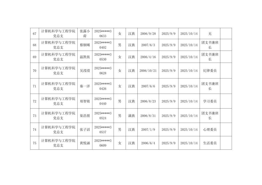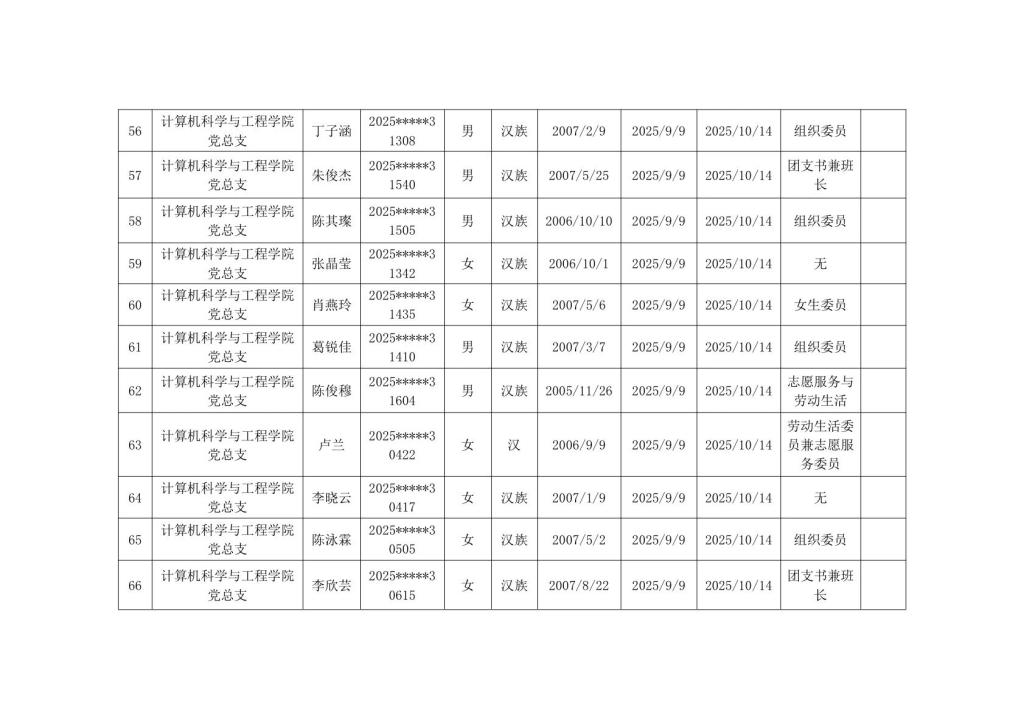 计算机科学与工程学院2025年秋季学期入党积极分子公示