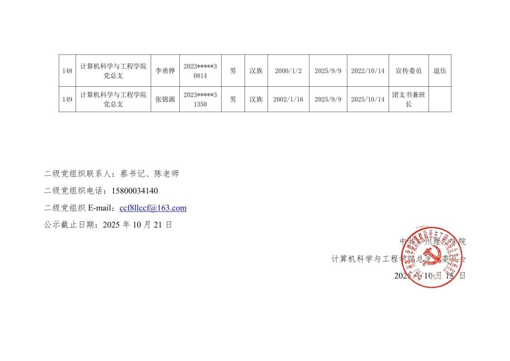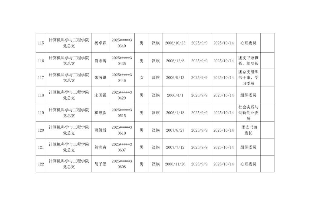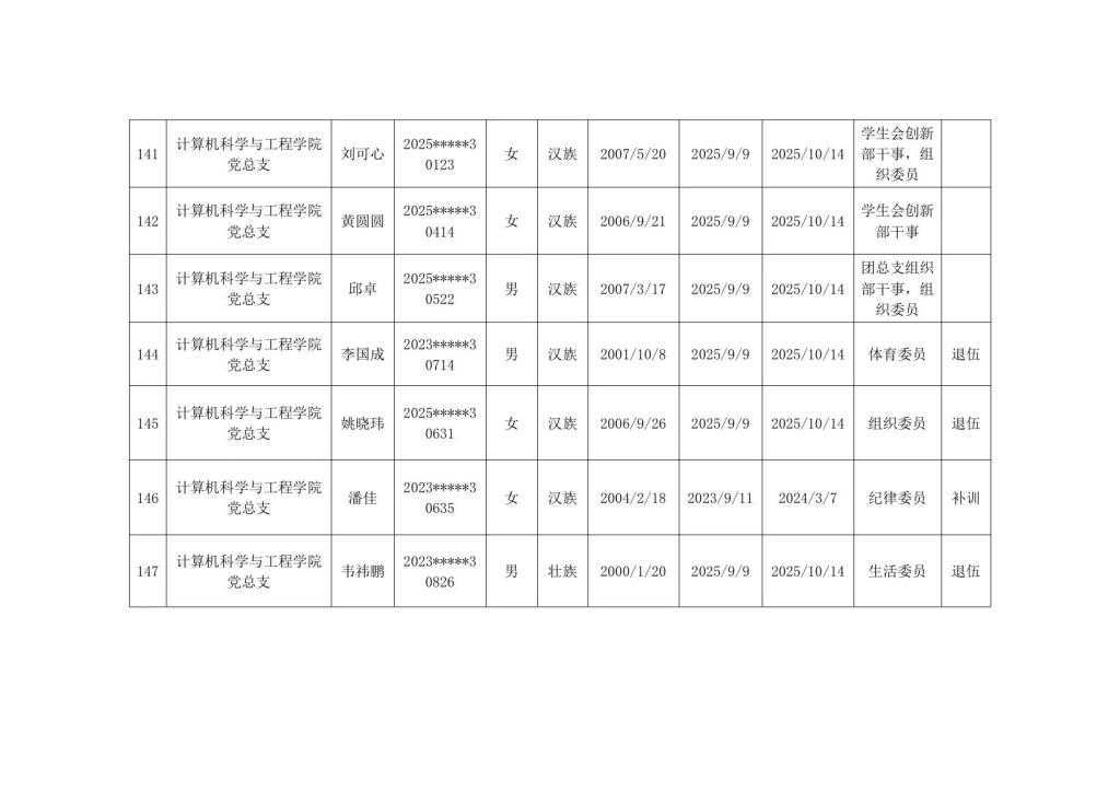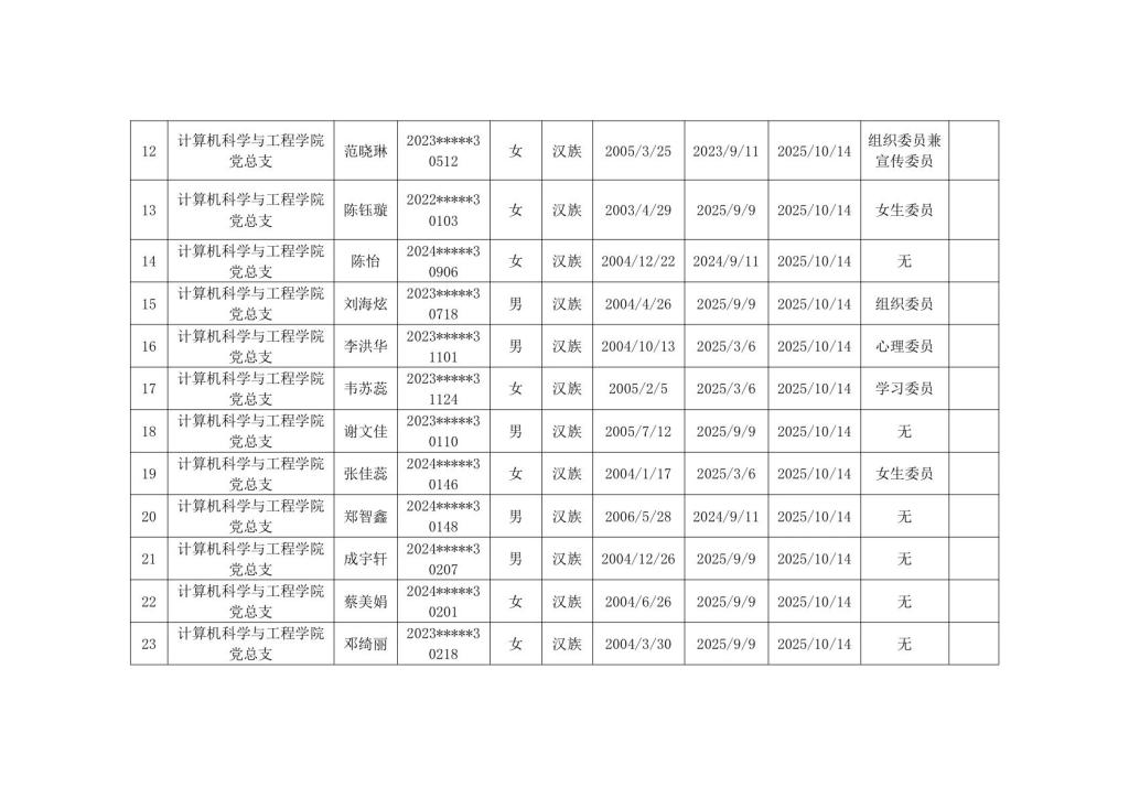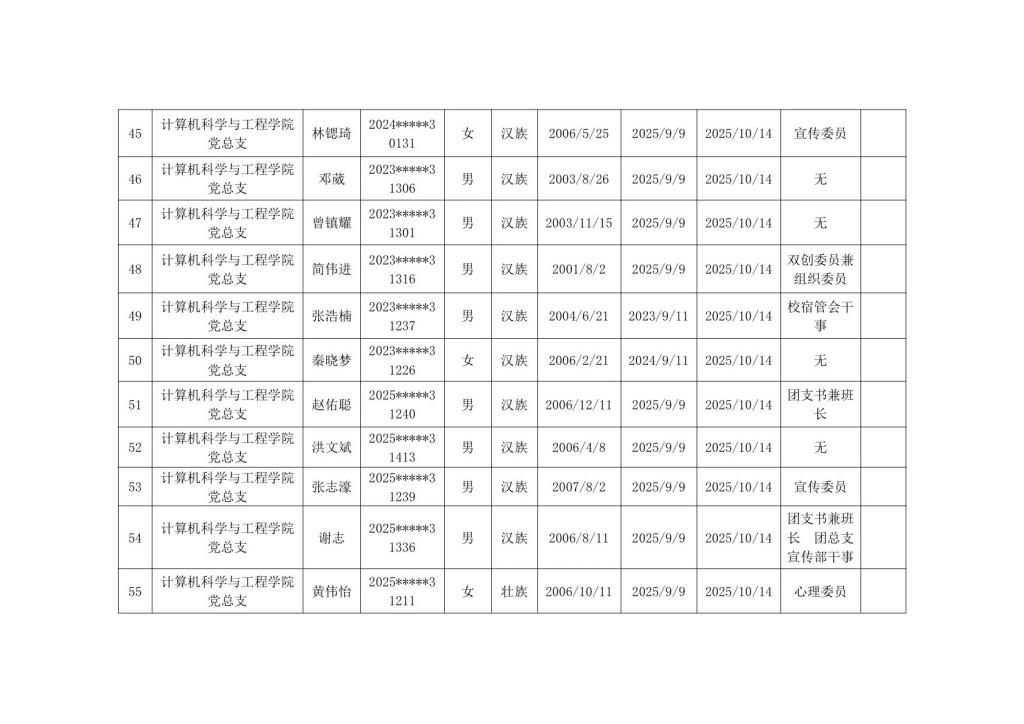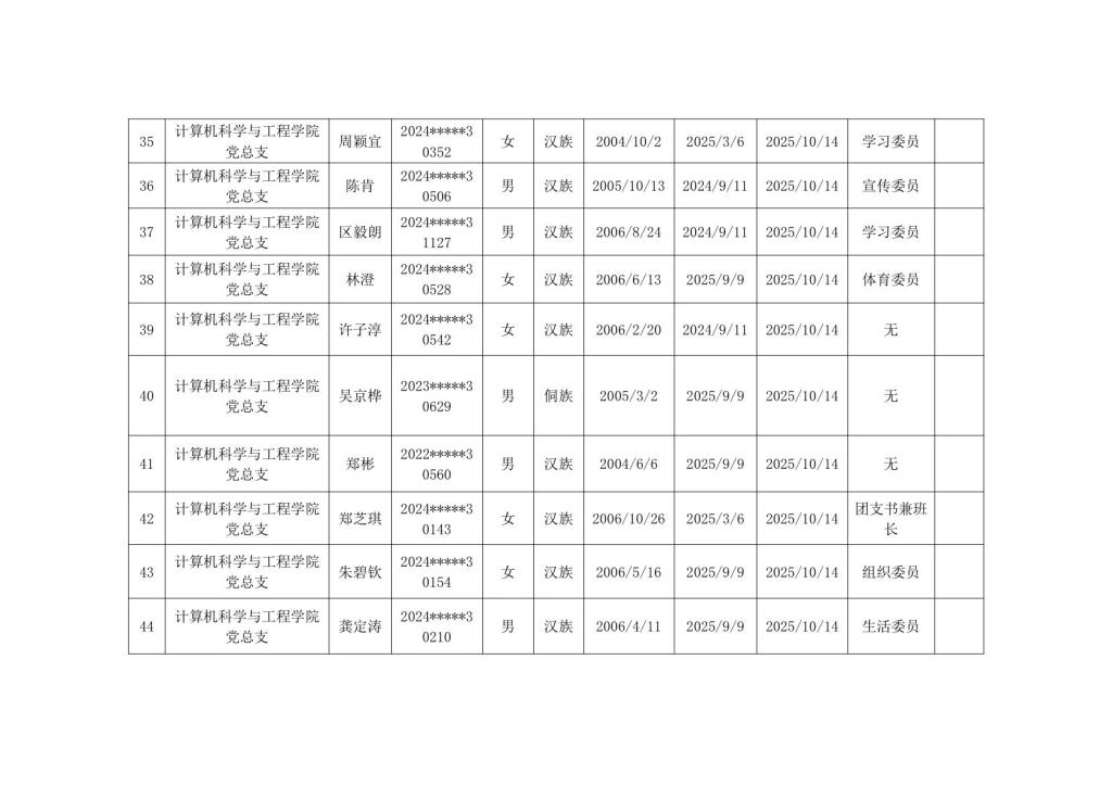计算机科学与工程学院2025年秋季学期入党积极分子公示