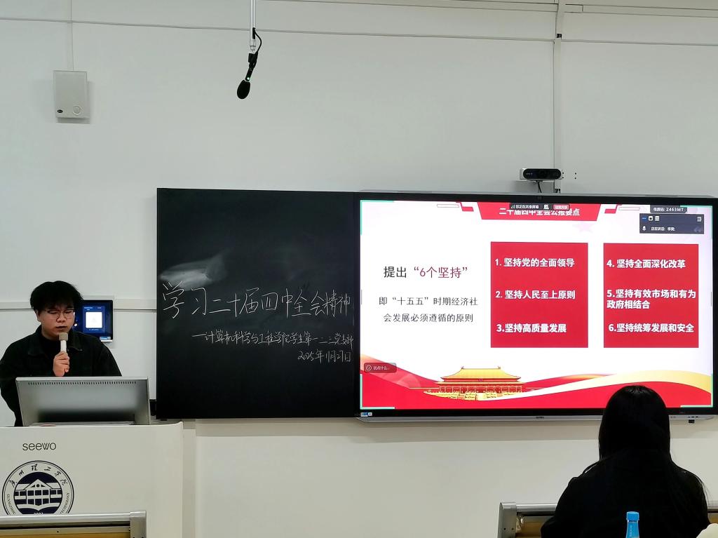 11月27日晚上,计算机科学与工程学院学生第一、二、三党支部在6栋109教室召开党的二十届四中全会精神学习会。