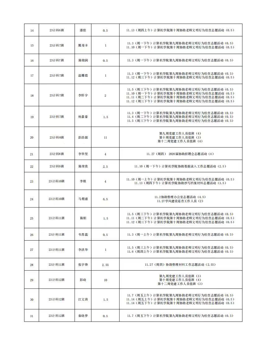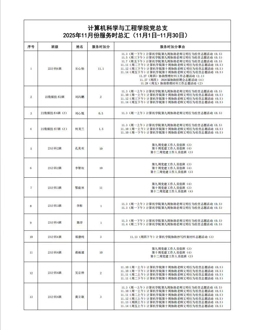 2025年11月份服务时总汇公示名单