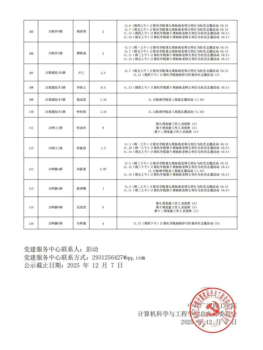 在听取培养联系人、党员和群众意见的基础上,经支委会研究决定,每月对计算机科学与工程学院各个发展阶段的同志进行服务时公示,具体情况公示如下。