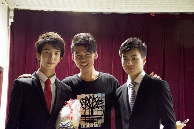 (我系的两位选手:(左)卢佑伟,(中)公关部部长钟秉峰,右(陈梓杰))