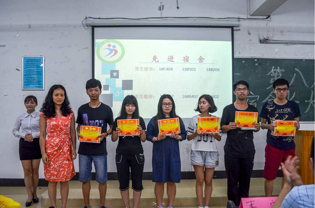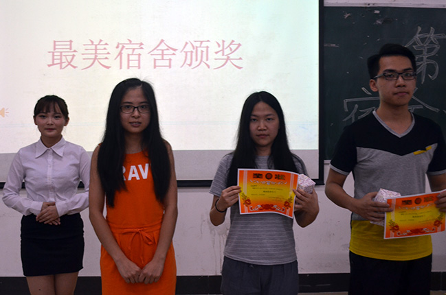 大会伊始,主持人宣布大会正式开始,全体人员观看了宿管部的自制小品。在小品展示中,由于宿舍的人缺乏安全意识,为了烧水洗澡,在宿舍中违规使用大功率电器,给宿舍造成了极大的安全隐患。在检查人员的细心教导下,终于认识到自己的严重的错误并且做了认真的检讨。通过小品展示,生动有趣地指出宿舍存在的问题,以及凸显出了学校的规章制度的重要性。随即,校宿管会林智超主任发表讲话。林主任简述自身的经历和感受,针对性地指出宿舍存在的问题以及提出了解决方法,并且指出要加强院与校宿管会的沟通,做好我院的宿舍安全工作。通过一个学期的评比,有两间及四间宿舍分别获得“最美宿舍”和“先进宿舍”称号,团总支杨柳书记和刘嘉薇副书记分别为获奖宿舍代表颁发奖状。会议最后,郑桂钿部长上台致辞,张泳副主席为大会作总结。