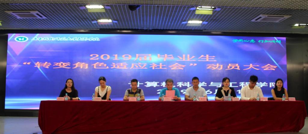 (通讯员:陈星莹)6月21日晚,9428cn太阳集团古天乐在学术报告厅召开“转变角色适应社会”文明离校动员大会,学院全体党政领导班子成员、辅导员老师、2019届全体毕业生参加会议。
