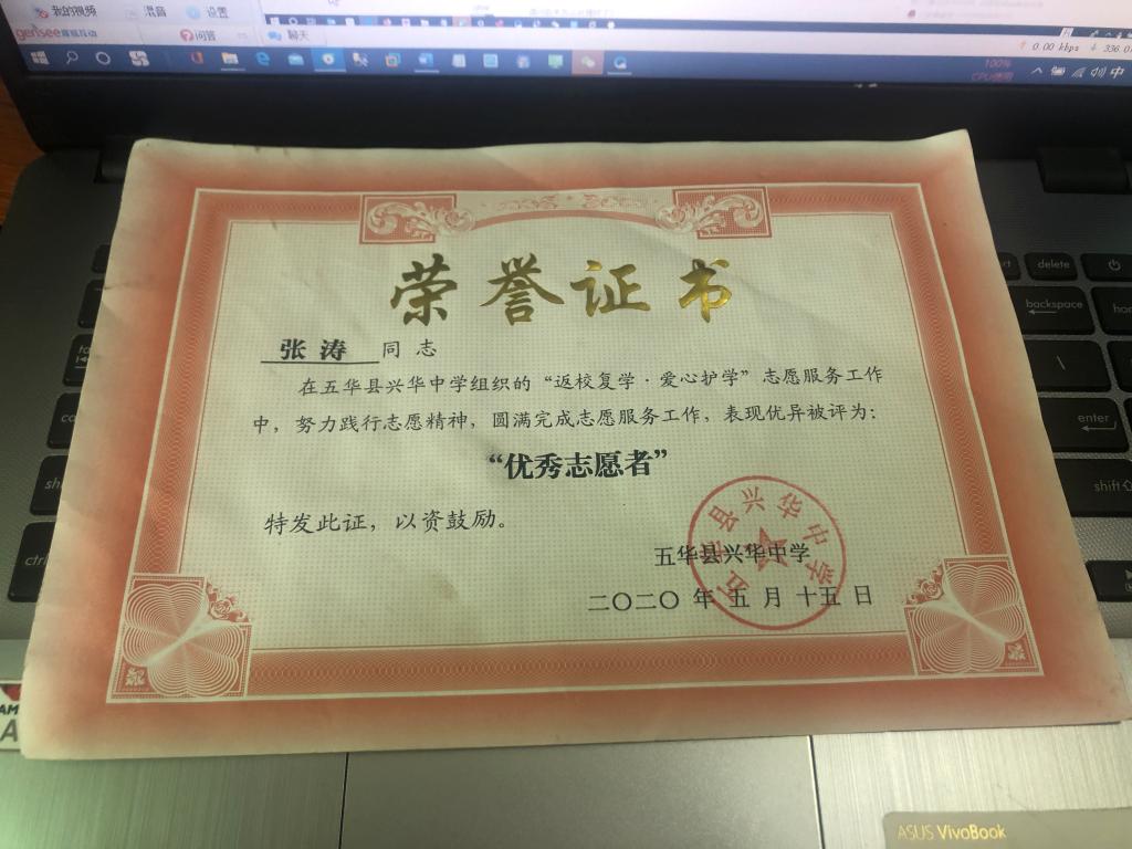 疫情尚未结束,学生每天穿梭在熙攘的街道,存在一定的安全隐患。在课余时间里,我院学子用实际行动参与护学志愿活动,体现了当代大学生的担当与作为,获得了人民的好评,因此,当地中学授予张涛“优秀志愿者”证书。