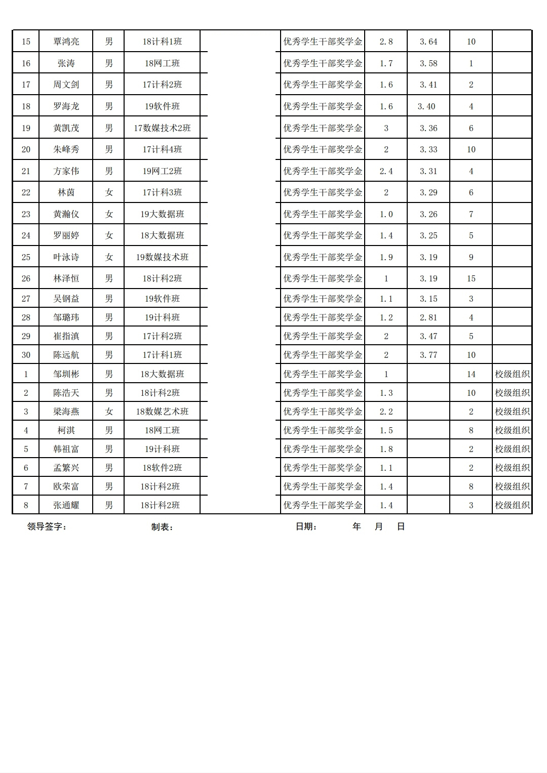 根据《广州理工学院优秀学生奖学金实施细则》(天院{2017} 31号),按照公平、公开、公正的原则,经各班评选、各学院审核,初步拟定我院2019-2020学年学生奖学金名单,并进行公示,时间为2020.09.27-2020.09.29。如对公示有异议,请在公示期内以书面形式并署真实姓名或通过电话反映。联系电话:刘老师:18529138053 陈老师:18218165117