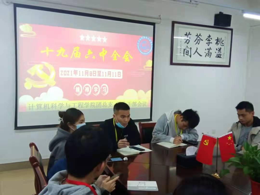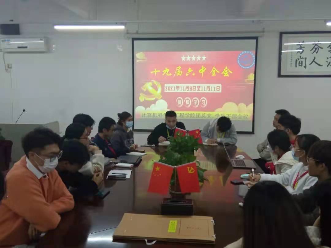 (通讯员:林纪高)12月21日晚,计算机科学与工程学院团总支·学生会执行主席林纪高带领学生干部,一起学习十九届六中全会精神。