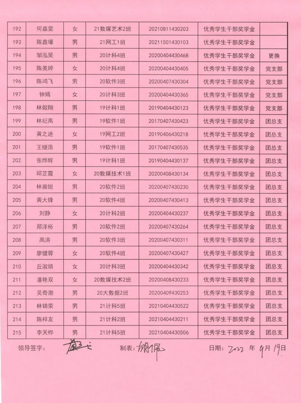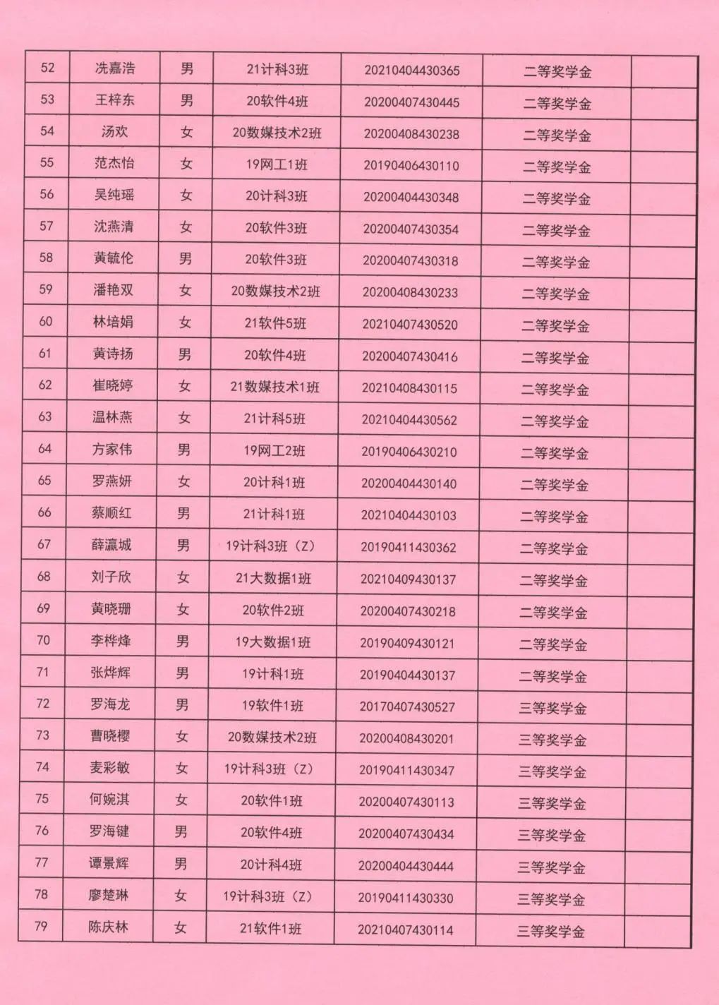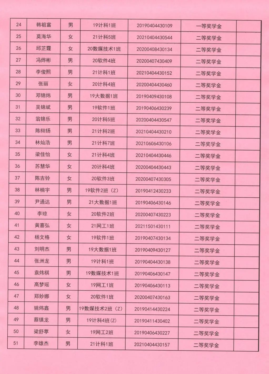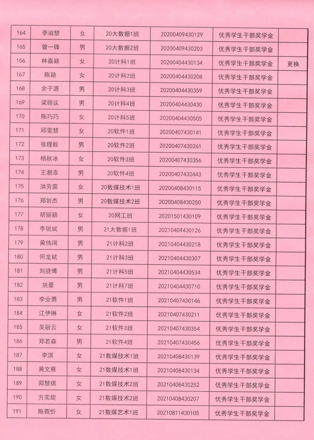 奖学金更换名单公示(二)