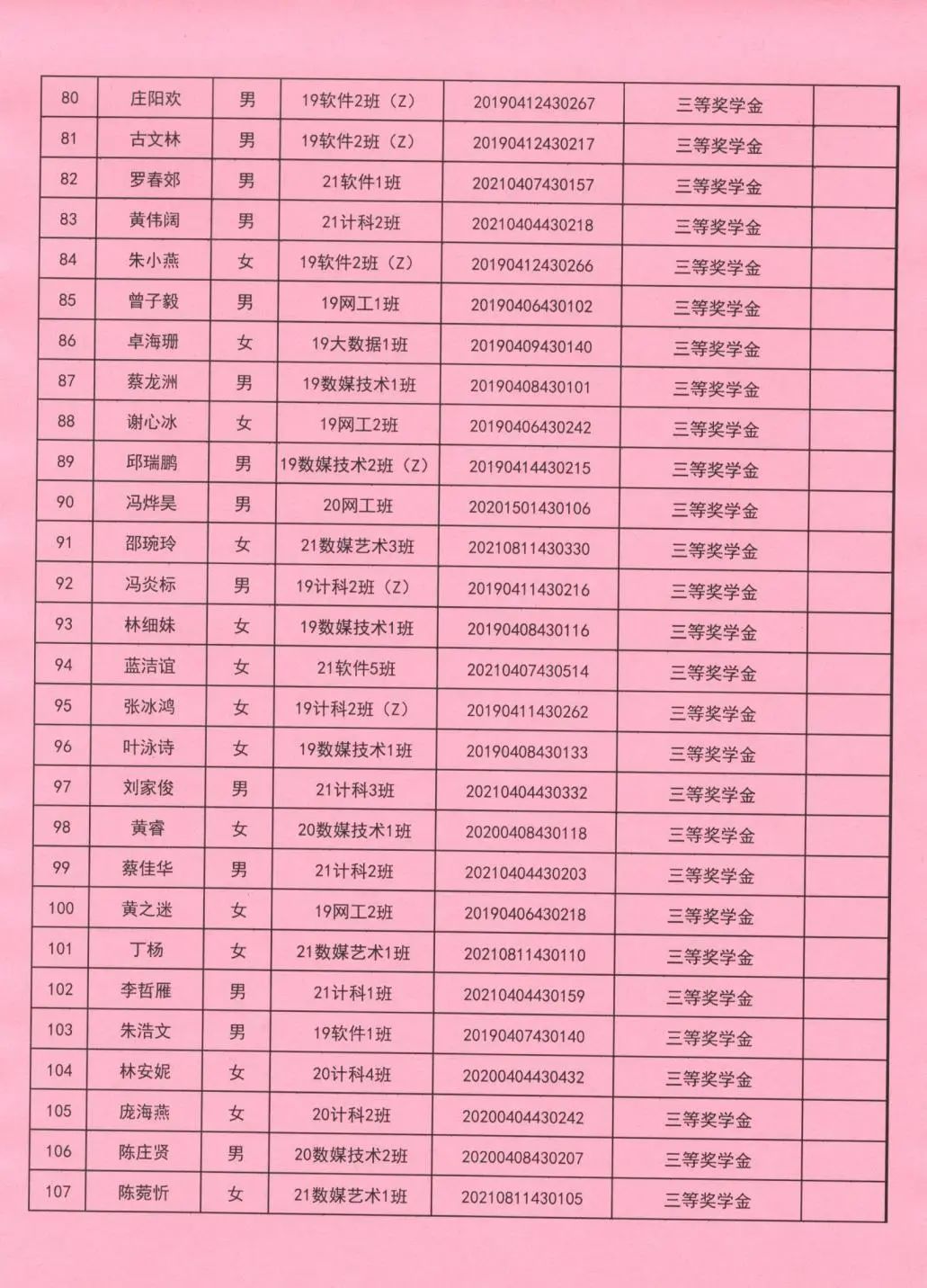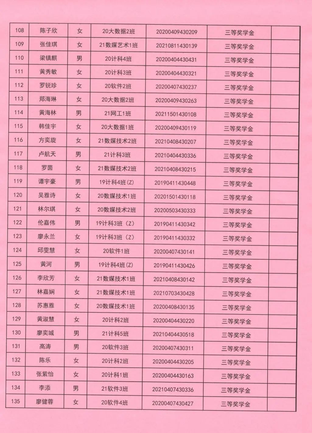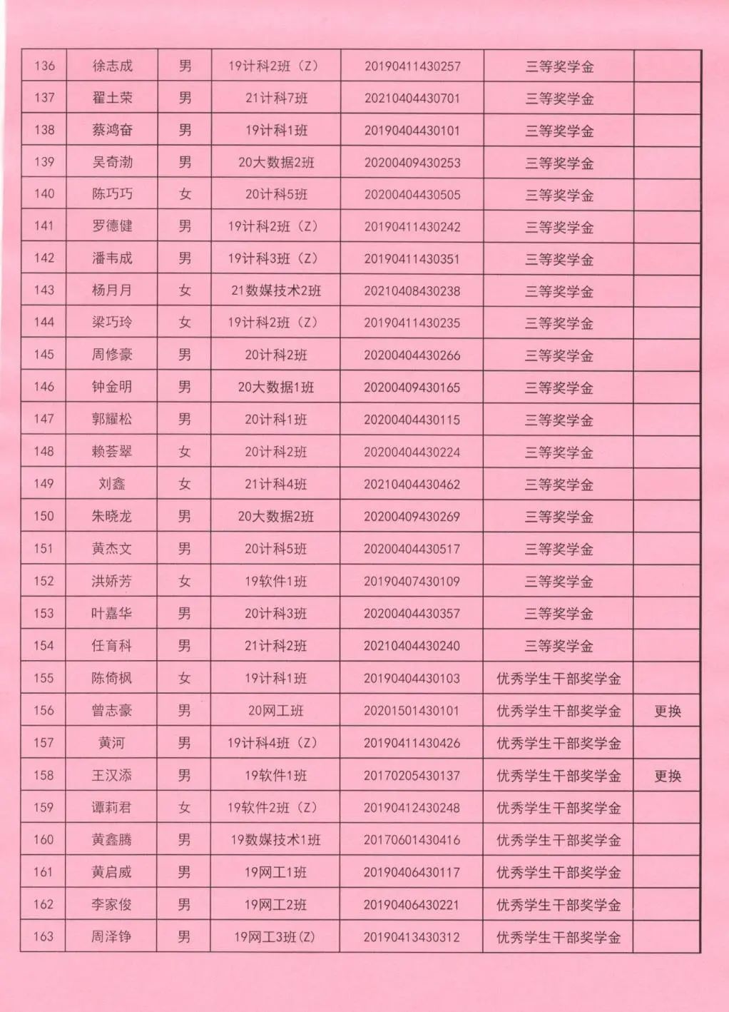 奖学金更换名单公示(三)