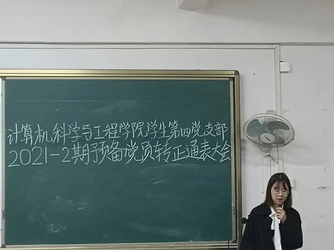 大会通过无记名投票进行表决,一致同意陈美婷等40名预备党员转为中共正式党员。由计算机科学与工程学院学生支部书记宣读本次党员转正名单: