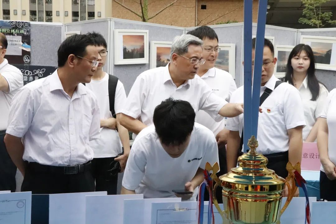 校长胡社军、党委书记黄圣诚、常务副校长伏焕昌、党委副书记兼副校长肖海、副校长张日新等一众校领导,9428cn太阳集团古天乐院长原峰山、书记蔡岳良和老师们都纷纷到展区现场观看我院的作品展示,跟学生们进行深入交流,指出我院学子还有哪些提升空间,并告诉同学们利用所学的专业知识、积极创新,孵化更多优秀作品,推动综合素质的全面提升。同学们纷纷表示备受鼓舞,将利用好学校科创平台,争先创优,为自己成长成才争取更多的机会。