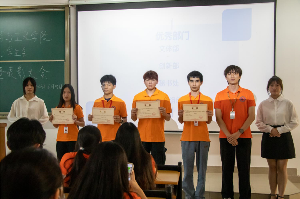 (通讯员:陈奕纯)6月15日下午,我院在13栋402教室召开计算机科学与工程学院团总支·学生会工作总结暨表彰大会。本次会议对团总支·学生会本年度工作进行了总结,同时对表现优异的同学和部门进行了表彰以及制定未来的发展方向和目标。本次大会由团总支外联部的罗天敏主持,出席会议的有计算机科学与工程学院团总支书记钟卓玲,学生会执行主席兼团总支副书记林瀚锐,学生会执行主席潘艳双,学生会执行主席吴奇渤,团总支组织委员邱芷霞及全体学生会成员。