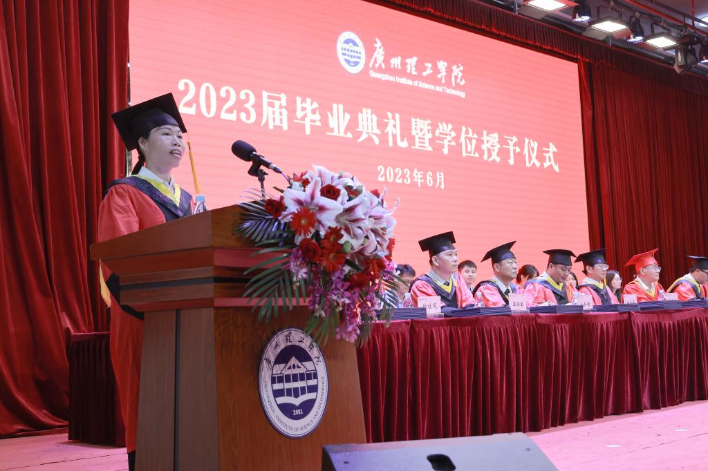 软件工程系副主任钟桂凤作为教师代表发言,她深情缅怀四年以来和同学度过的校园时光,为同学们送上毕业祝福并寄语全体毕业生要将个人的发展与时代的进步融合在一起,用行动照亮自己人生的未来。