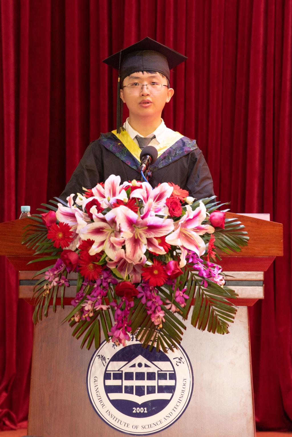 19网工2班李甘雨作为毕业生代表发言,他深情的感谢同窗的支持、感谢学科竞赛成就了他,感谢学校和老师的培育,并号召同学们都要有撕掉标签的勇气,要成为自己所认可的人。李甘雨同学是我院优秀毕业生之一,刚刚考上了中国科学院大学研究生。今年,学院考研成绩无论数量和质量创了新高,从往年只有省内重点高校,到今年考上国内一流高校、211高校等。