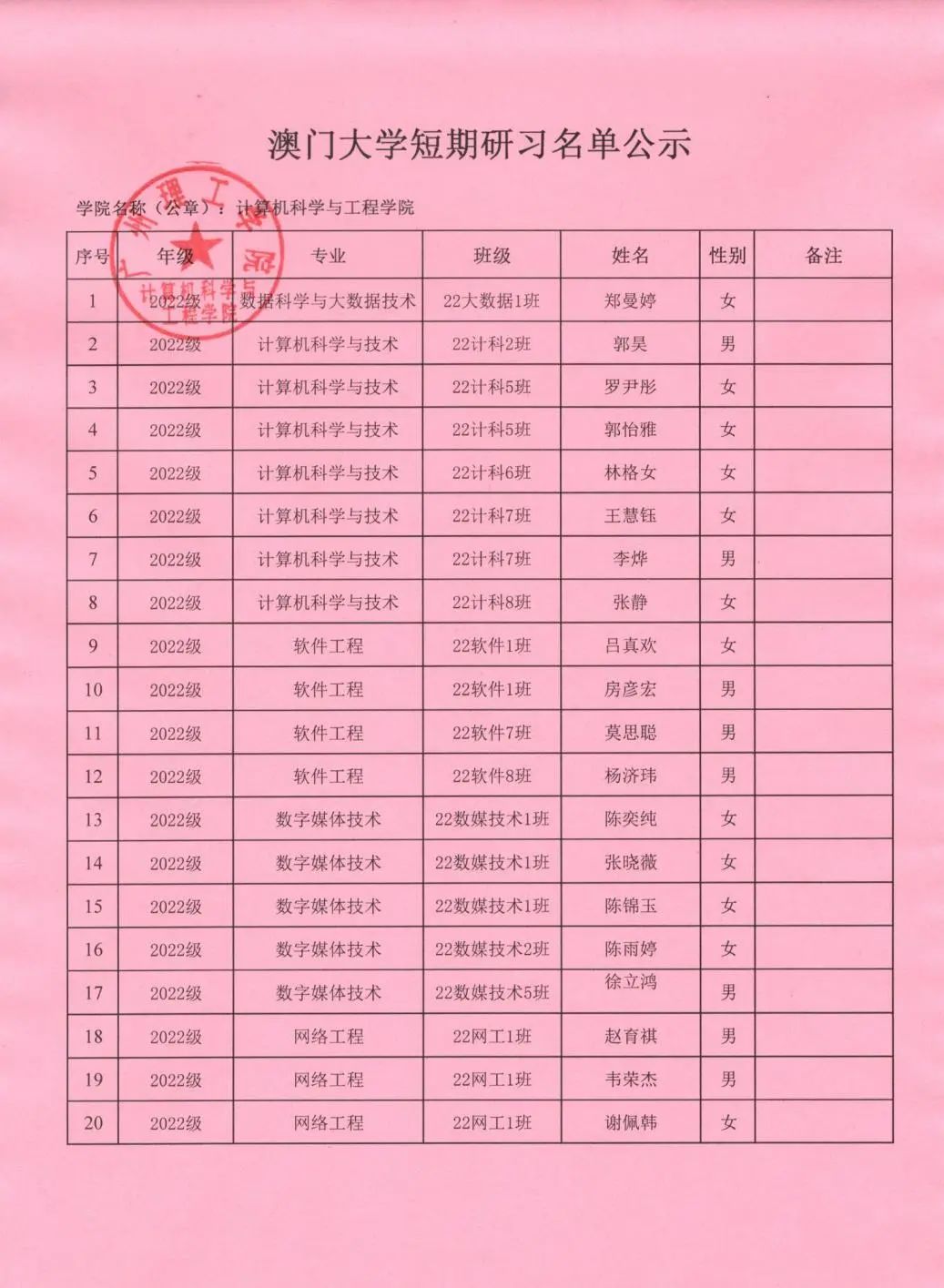 根据学校《关于选派优秀学生赴澳门大学短期研习的通知》的文件精神,“学生个人申请,二级学院审核推荐,按照公平、公开、公正的原则,现将评比结果予以公示,公示期为2023年10月20日至10月24日。若对公示有异议,请以书面形式向以下受理部门反映,反映情况时请署名真实姓名和联系电话,不签署真实姓名或不提供具体事实材料的,将不予受理。