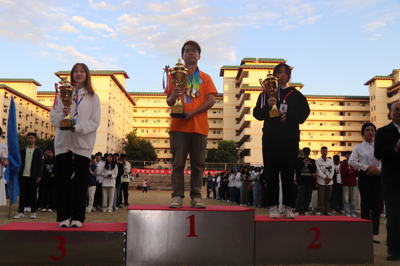 校运会在热闹激情的氛围中轰轰烈烈的结束了。在主持人宣读学院获奖名单后,我院被授予优秀组织奖,同时荣获男子团体总分第一名,女子团体总分第三名,以及团体总分第一名的优异成绩!这场校园运动会已经落下帷幕,但它带给我们的激情与感动却永远留存。我院学子也学会了向一个目标去努力、去奋斗,去勇往直前时,不论结局的如何,也不要留下任何遗憾的道理。运动场上的精神会融入我们的生活当中,伴随我们前行,让我们在未来的道路上一路高歌!