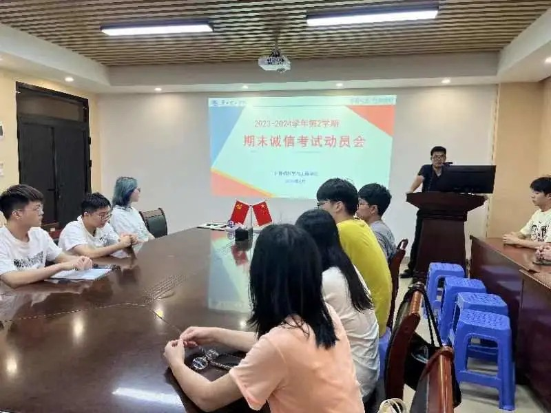 (通讯员:马岩岩)为深入推进我院学风建设,进一步强化同学们的诚信考试意识,6月20日下午,我院在信息楼会议室成功举办了一场诚信考试动员大会。此次大会由学院党总支书记蔡岳良主持,学工办主任陈健及各班班长和学委参加了会议,共同为即将到来的考试季注入了一股诚信之风。
