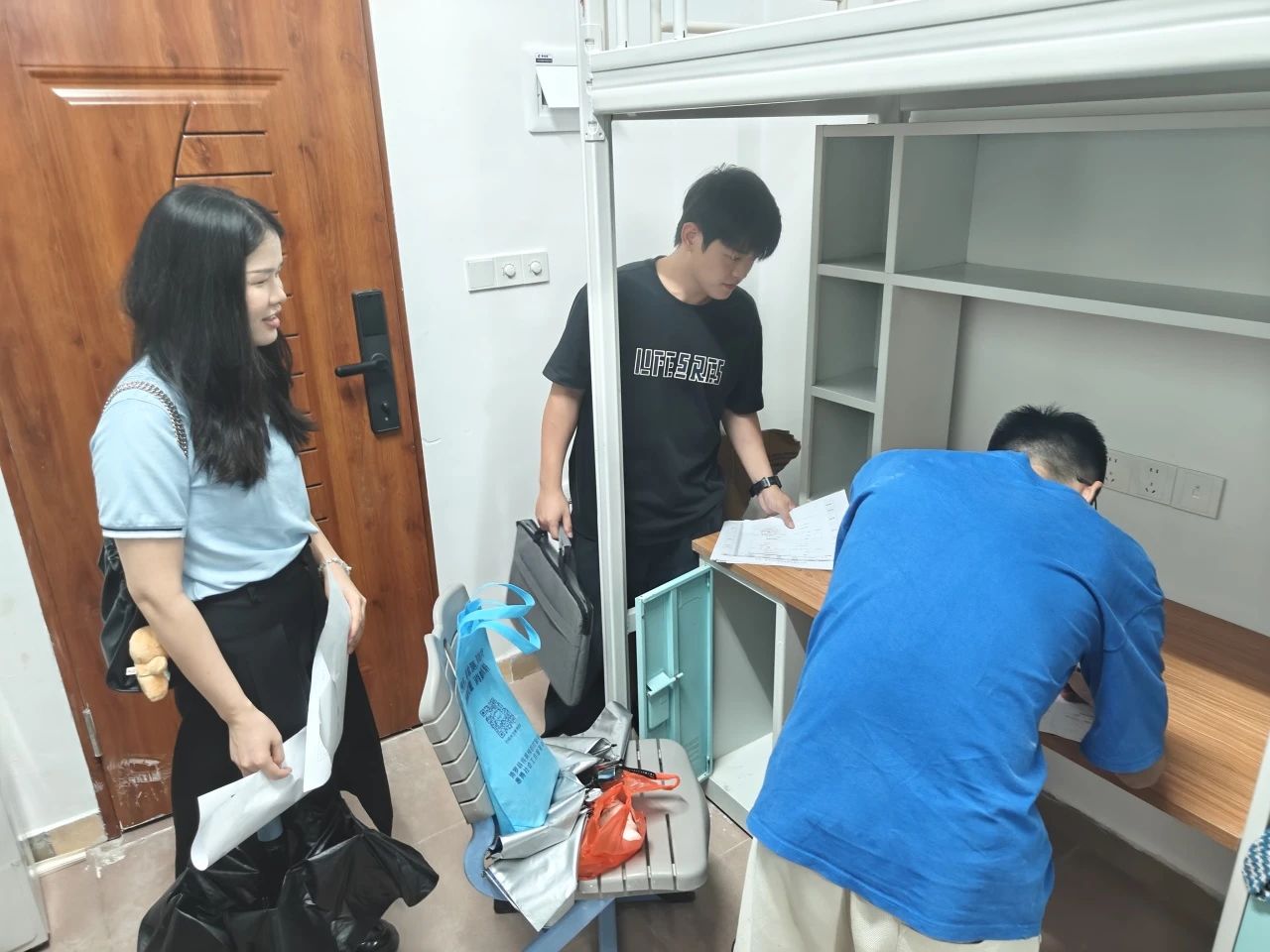 (供稿人:王锦玲)8月31日晚,为确保每位老生都能顺利过渡回迁新校区的状态,我院白云校区和惠州校区全体辅导员们提前筹备,深入各栋宿舍楼,展开了一场细致入微的走访慰问活动。