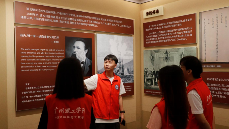 (通讯员:张静、蒙濛、李槿)汕头开埠文化陈列馆汕头古港启新篇,开埠风云涌百年。文物陈列映往昔,文化繁荣共赏鉴。7月10日上午,“智汇沟南”实践团踏上了探寻汕头深厚文化底蕴的征途,前往习近平总书记2020年来到广东汕头考察的地方——汕头开埠文化陈列馆。这座镶嵌于城市记忆深处的文化瑰宝,以一场穿越时空的对话,向实践团成员们展示了汕头从渔村到国际商埠的辉煌变迁。