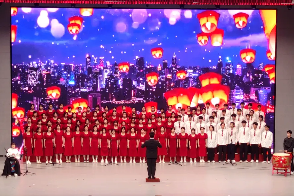 在此次活动中,我院积极推进筹备工作,并诚挚邀请陈樱瑜、梁梓贤担任演出指导。活动期间,由杨悦熙同学指挥学子们在舞台上深情演唱《我爱你,中国》和《灯火里的中国》两首爱国曲目。