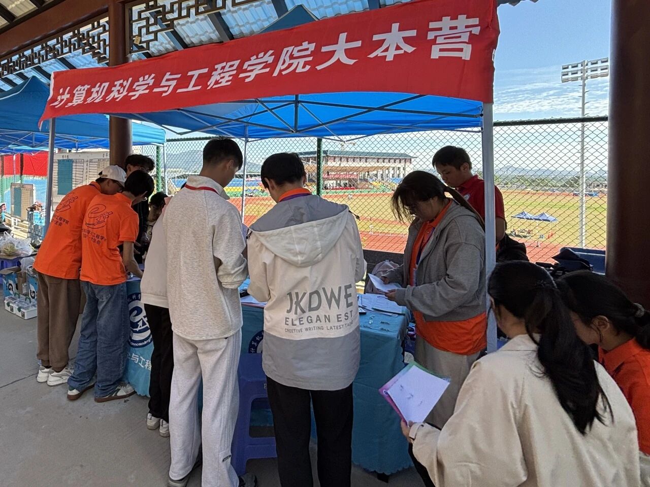 赛场上的拼搏离不开场外的坚实支持。观众席上,由我院工作人员组成的啦啦队始终激情澎湃,他们挥舞院旗,齐声呐喊,用阵阵声浪为选手们注入源源不断的力量;后勤保障点的同学们则默默坚守,及时递上饮用水,细心做好物资管理,用无微不至的关怀成为运动员们最温暖的港湾。他们的身影,与赛场上拼搏的健儿们一样,都是我院风采的展现,筑成了赛场边最坚实的后盾,为这场体育盛会增添了温暖的底色。