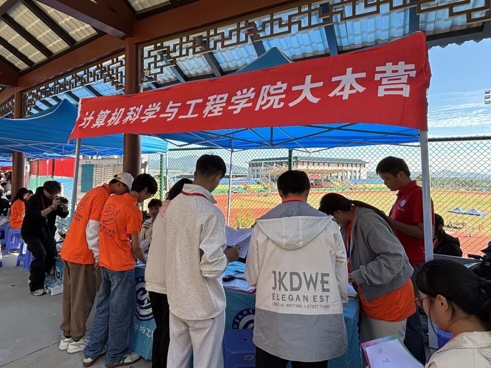 上午8时整,运动场上旌旗飘扬,乐曲高奏,运动会开幕式在万众瞩目中盛大开启。国旗护卫队率先入场,他们步伐铿锵,气宇轩昂,展现出严谨风范。紧随其后,各学院的彩旗队通过主席台,我院彩旗队统一身着服装,挥舞着彩旗,齐声高呼“激情飞扬,计科最强;挥洒汗水,青春无悔!”的口号,激昂的口号声瞬间点燃了全场的热情。当庄严的国歌奏响,全体师生肃立行注目礼,浓浓的爱国情怀在心中激荡。校领导的开幕致辞慷慨激昂,勉励全体运动员赛出风格、赛出水平,为运动会首日赛事注入了无限的激情与动力。
