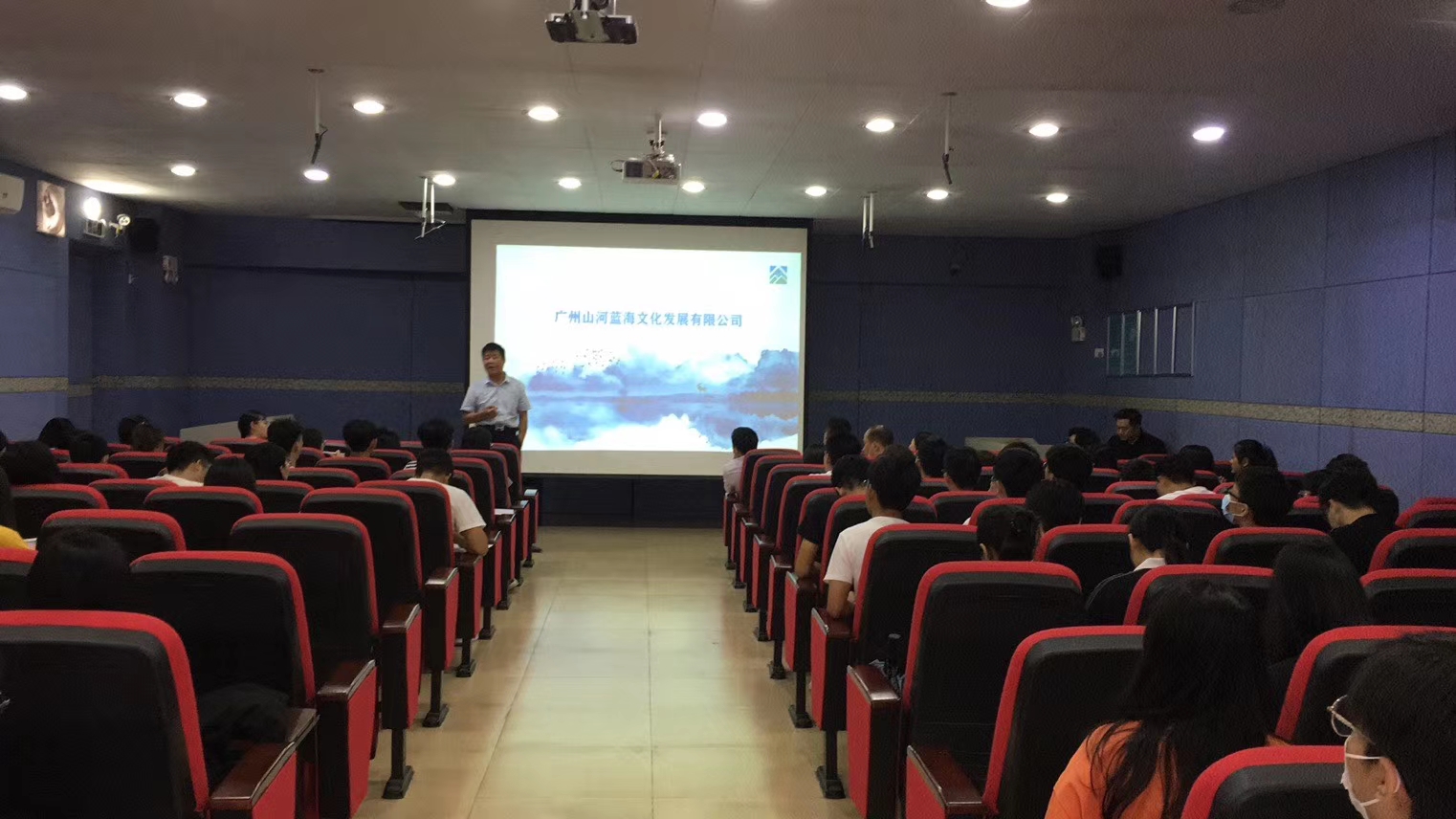 此次宣讲会由广州山河蓝海文化发展公司主讲,企业执行总经理陈柏成首先向我院数字媒体系学生介绍公司发展历程以及对未来的规划,随后向数字媒体系学生简单阐述了当今媒体发展的潮流以及数字文化产业对国家发展的重要性,并希望可以将文化产业放到发展新格局中促进国内循环,满足人民群众对生活的美好需求,宣讲会过程中,9428cn太阳集团古天乐数媒系专业老师马伟老师与执行总经理陈柏成明确希望今后两方可以多多合作共同进步。