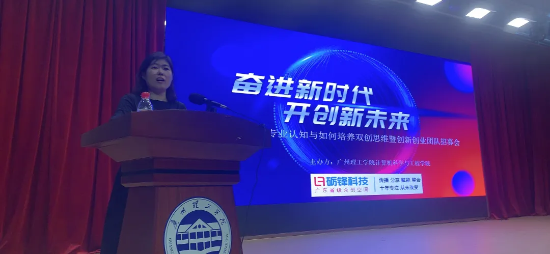 主讲嘉宾林丽静总经理结合计算机专业学生实际解读了IT行业现状与职位发展未来,从大学生四步成长路线图展开了讲座。林总从校企合作 “砺锋创新开发工作室”的建设思路和如何加入工作室及创新创业项目等方面进行深入阐述。同时,结合自身的创业历程,林总介绍了多位IT行业创业者创新创业事迹,和展示砺锋众创空间前期的实践成果。这让学生们深受启发和鼓舞。