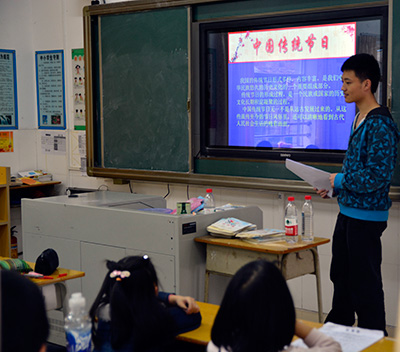 4月9日上午,我系18名在校学生党员,8名入党发展对象,4名入党积极分子,共30人到白山小学,参加本次义教活动。活动面向的对象为白山小学一年级至五年级的学生,教授课程内容包括:绘画、讲故事、唱红歌、英语口语练习,以及诗歌朗诵。