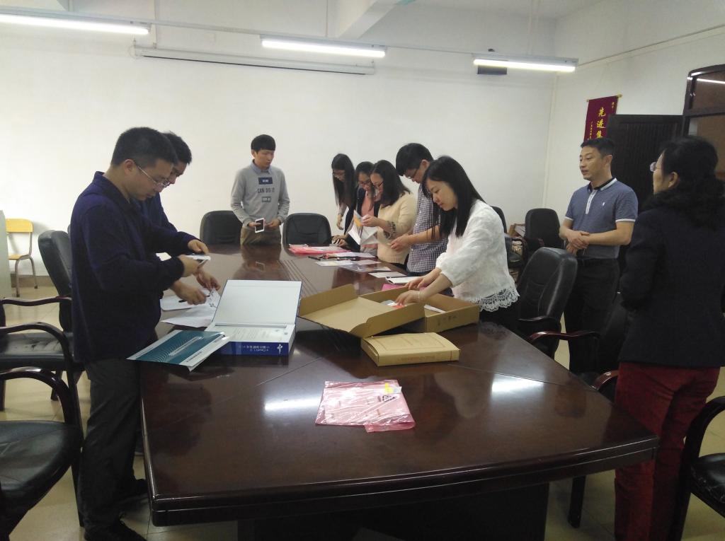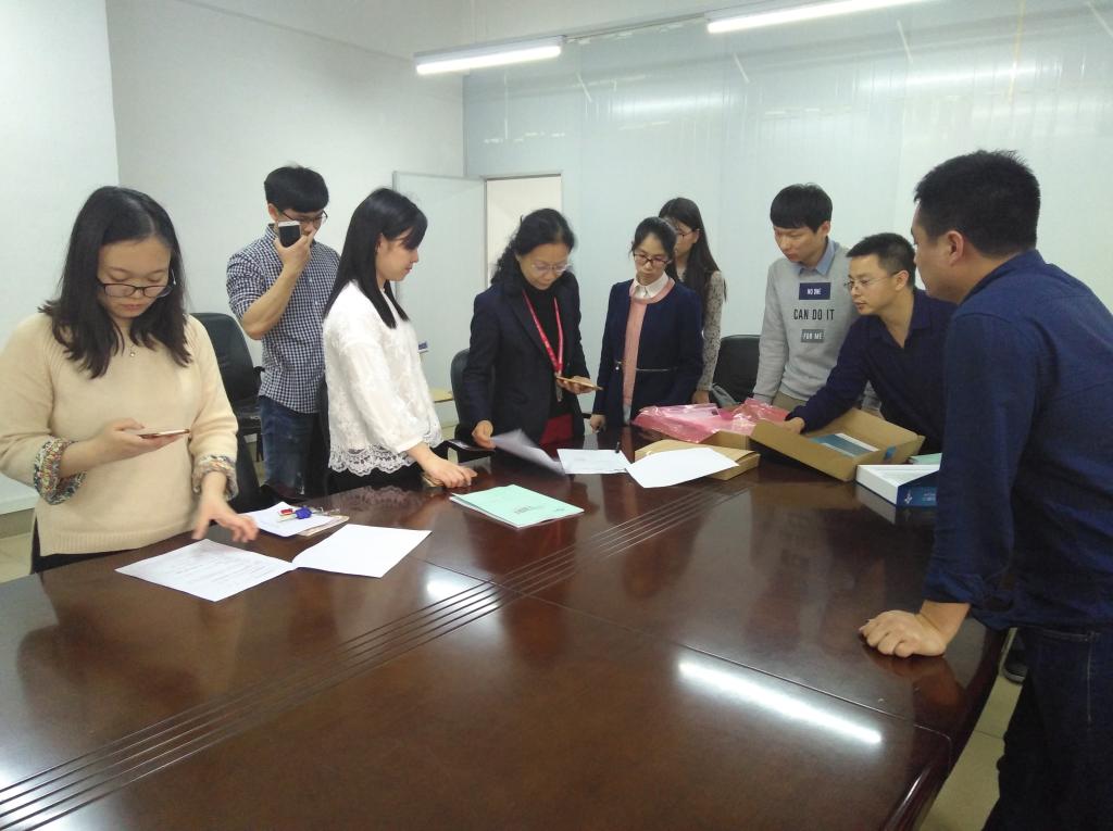 首先,设备处钟处长带队先对放置在网络中心、11-504机房硬件设备进行了一一核对,在11-504机房对平台及相关软件进行了验收,确认设备型号与合同要求一致,设备安装符合安装规范和系统运行情况正常。然后,所有人员移步到11-302对所有硬件设备的合格证、保修卡、使用手册、软件使用授权证书、配套教学资源等资料进行一一检查,确认所提交的项目资料齐备、内容详实。查实资料符合学校验收要求后,经三方签字确认,云计算与大数据实验室一期建设项目学校专家论证验收顺利通过。