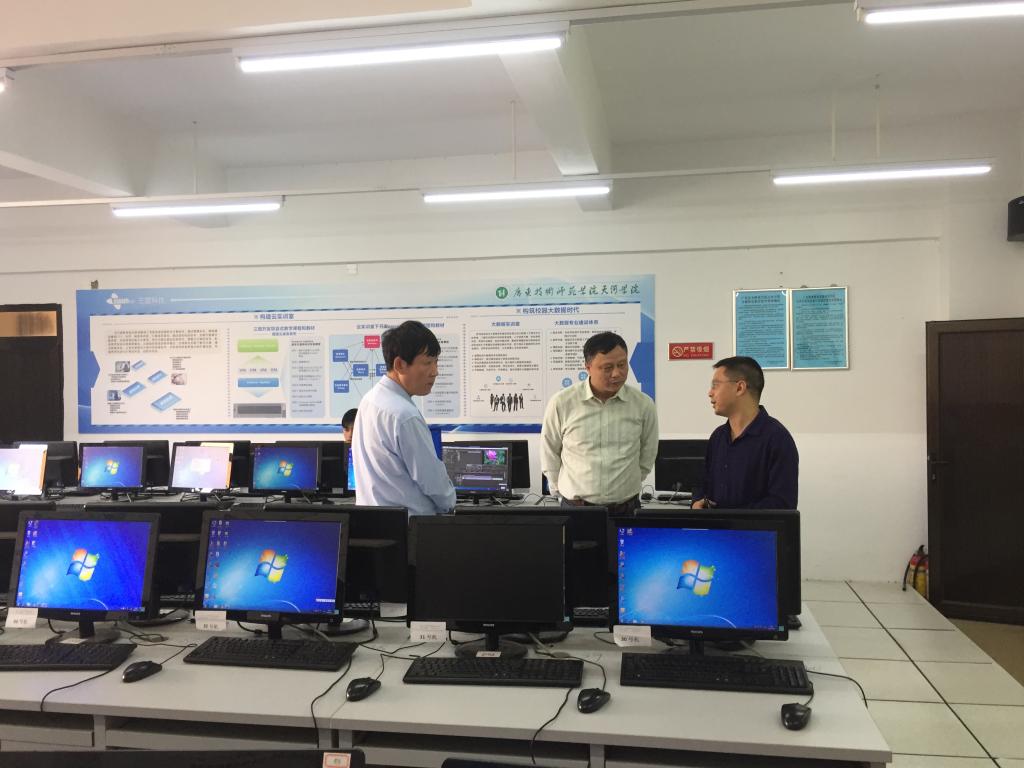湖北师范大学是一所以人文学科、社会学科、理学、工学为主的省属综合性重点师范类本科院校。双方就各自学院的办学经验、特色专业进行了交流,重点就云计算与大数据相关课程建设、实践教学条件建设进行了探讨,并就大数据人才培养等问题同我院深入交换了意见。柯副院长和甘主任参观了我院网络中心机房和大数据实训室,详细了解云计算实训平台、大数据实验平台的使用情况以及学生对平台使用反馈,并在11-504实地考察了我校大数据实训专业建设课程及三盟大数据实训平台,对我院大数据专业建设效果表示高度认同。